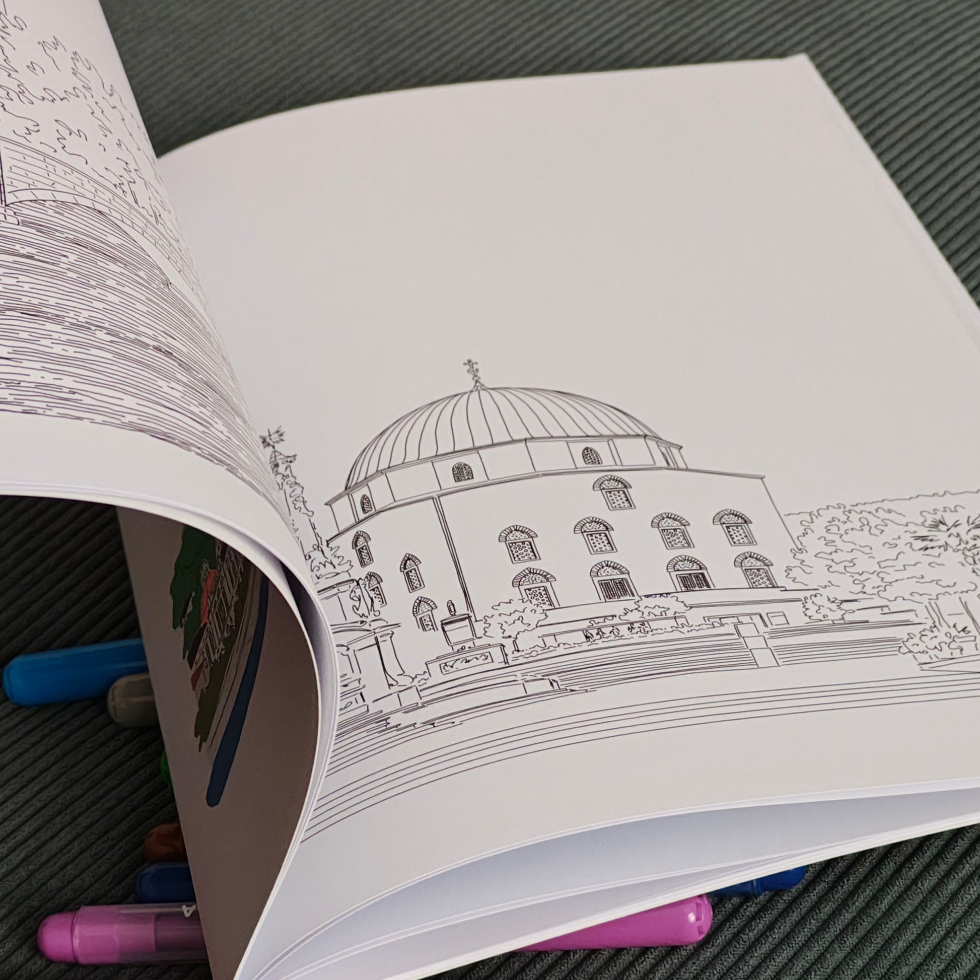 The hand-knitted coloring book features iconic buildings and places of Hungary. The black-and-white graphics provide space for free self-expression.