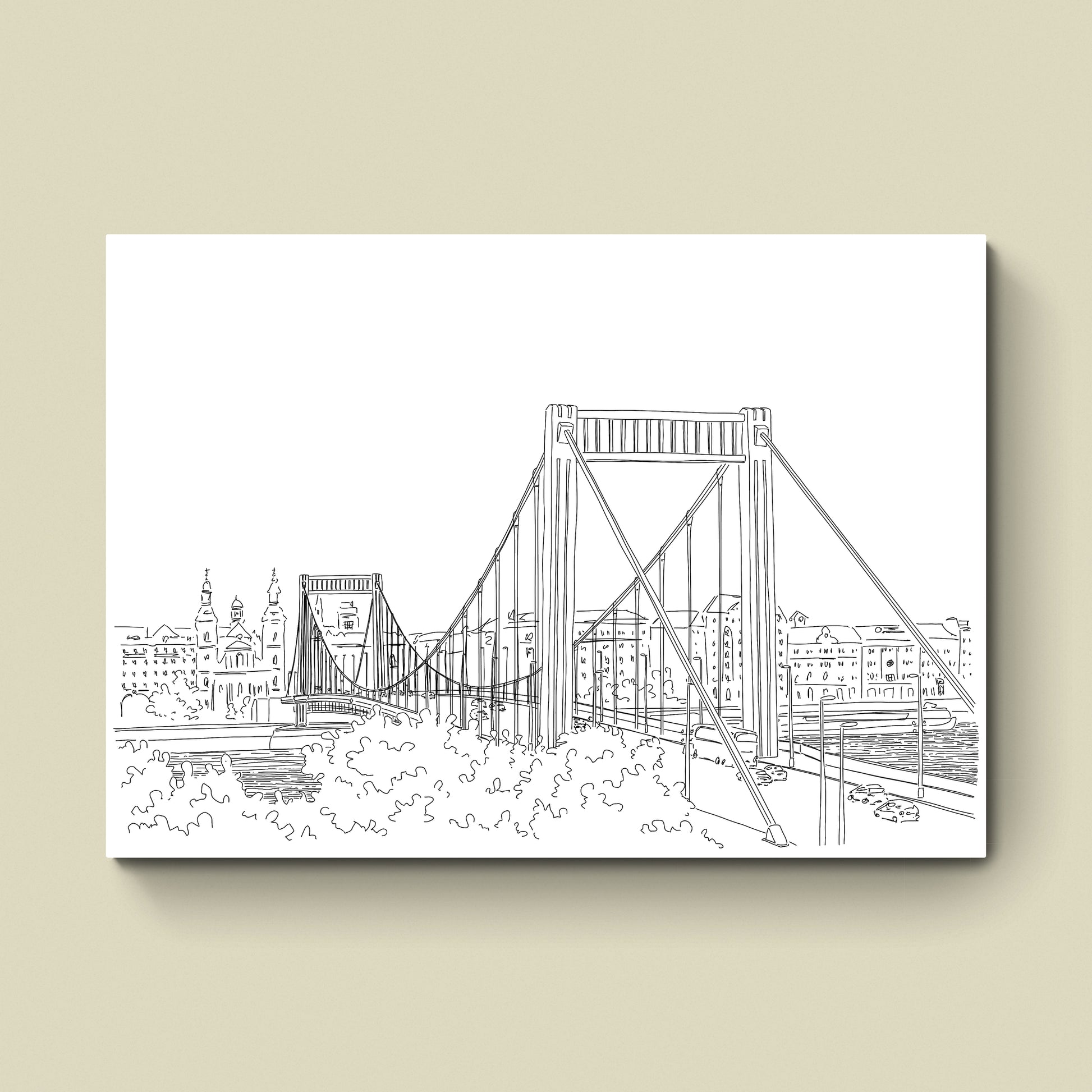 My drawing of the Elizabeth Bridge is printed on high-quality, fine paper in various sizes.