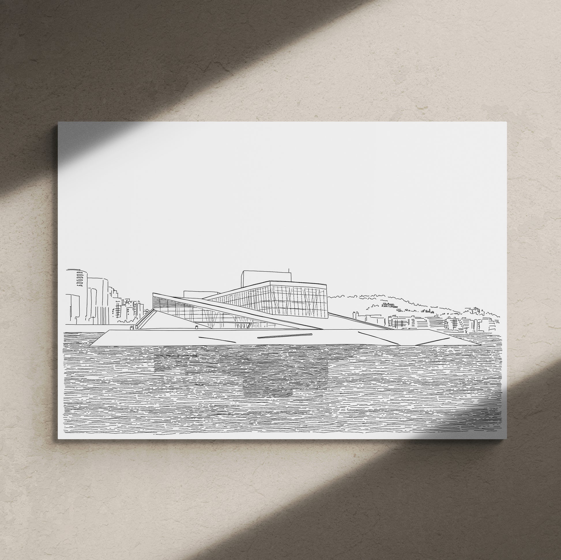 It was taken from the Norwegian capital's Opera House my drawing is printed on high-quality, fine paper in several sizes.