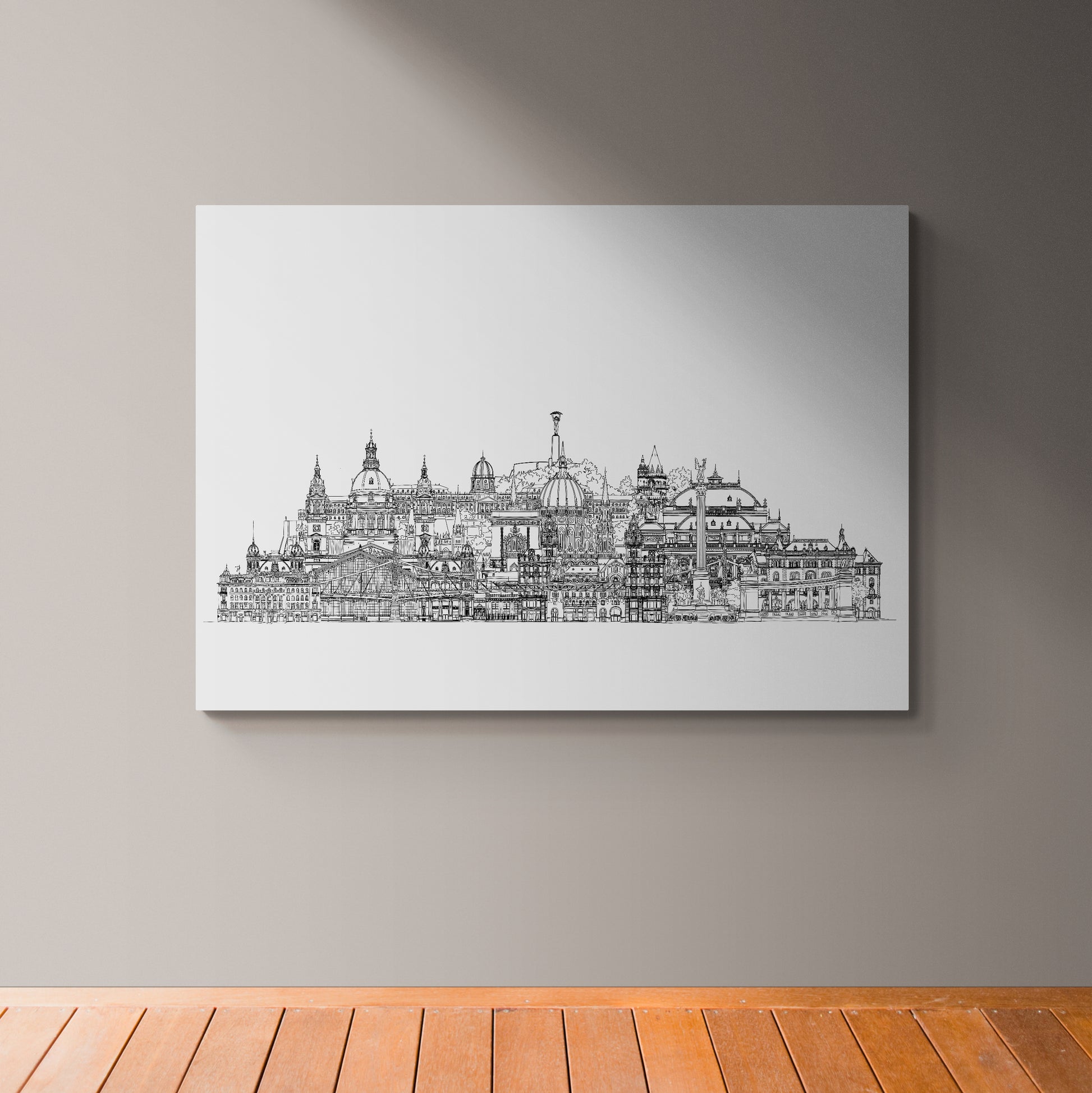 A Budapest montázs grafikám nagyméretű feszített vászonképen.