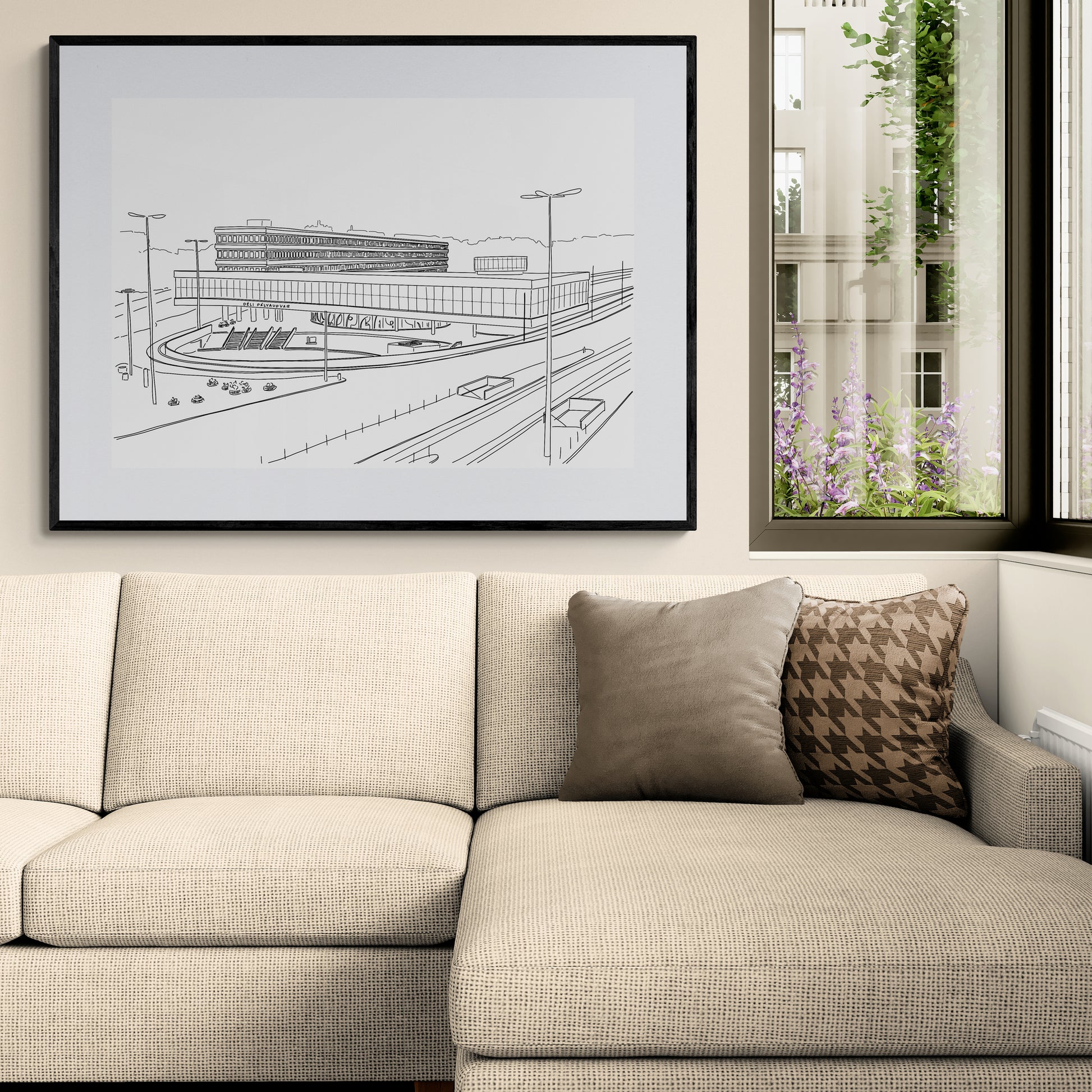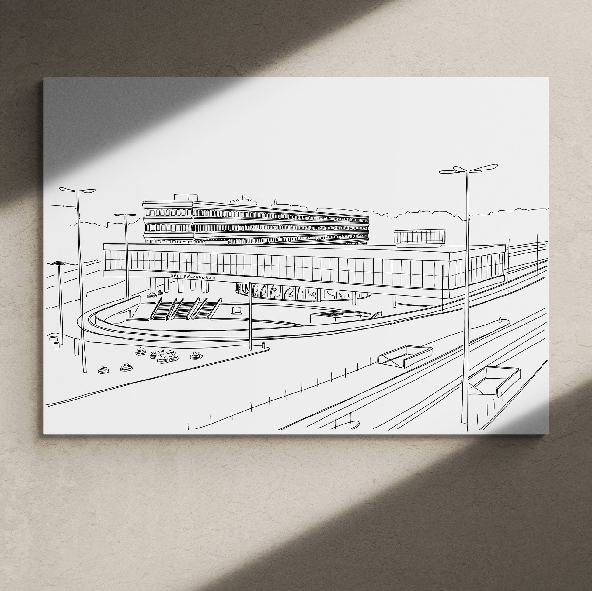 A Déli pályaudvarról készült rajzom többféle méretben magas minőségű, finom papírra nyomva.